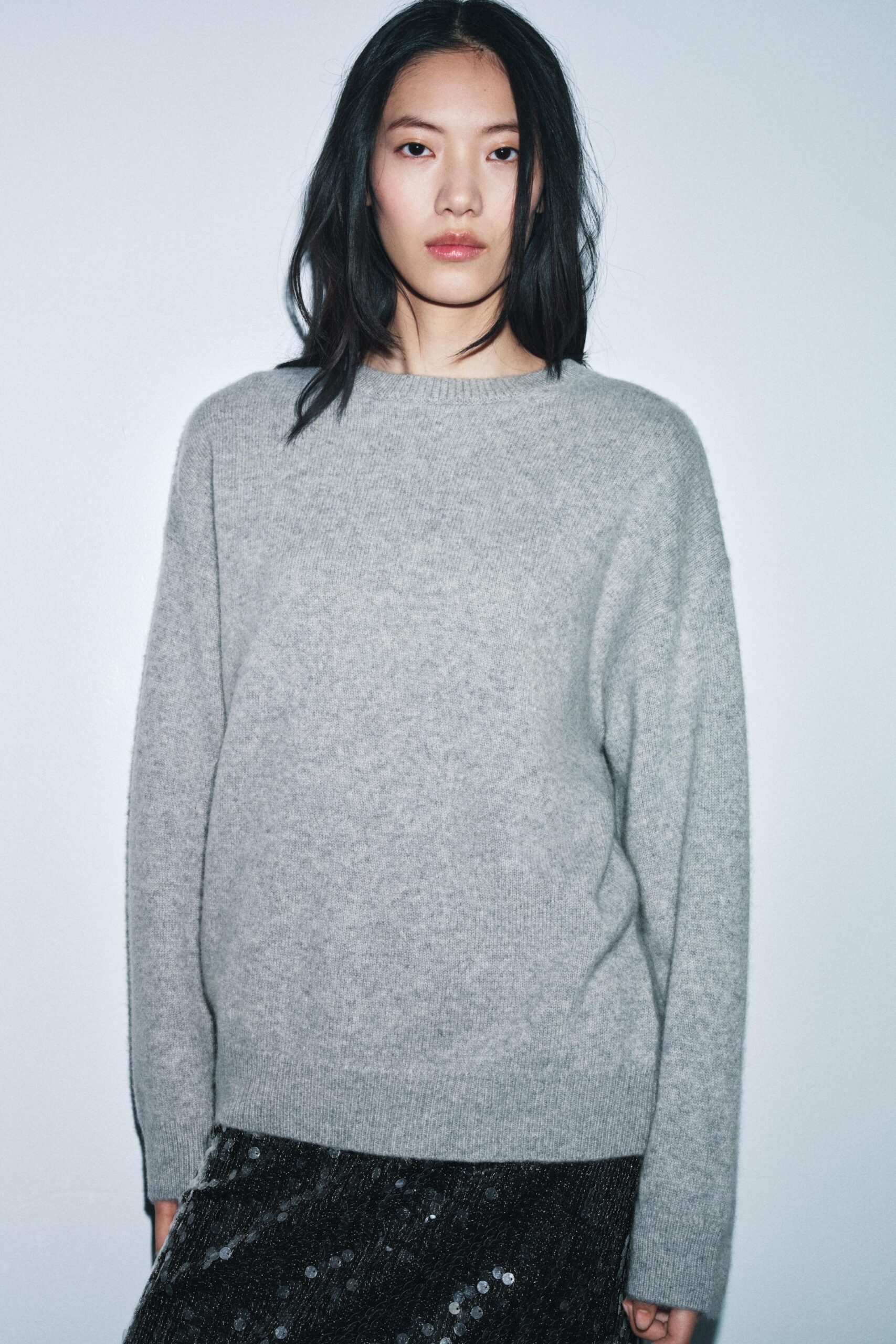 Loose-fitting jumper made of 100% cashmere yarn. Featuring a round neck and long sleeve.
