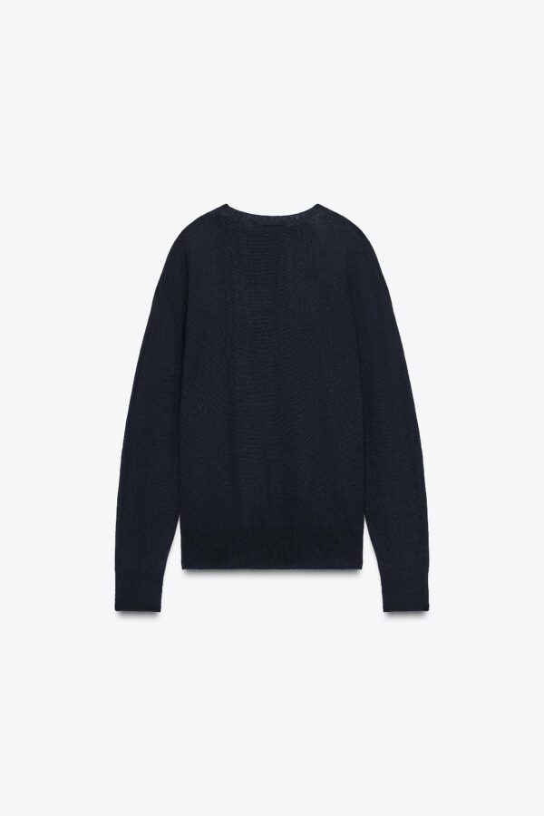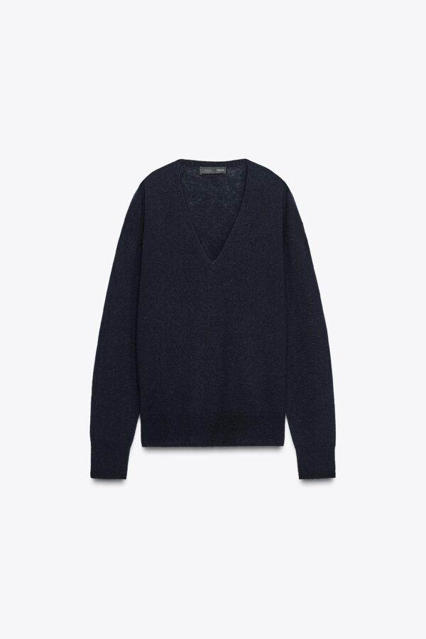 Jumper with main fabric made of 100% wool yarn. Featuring a V-neck and long sleeves. Finished with ribbing.