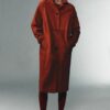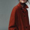 Fluid coat made of 100% suede leather. Featuring a lapel collar and long sleeves. Patch pockets on the front. Front button fastening.
