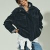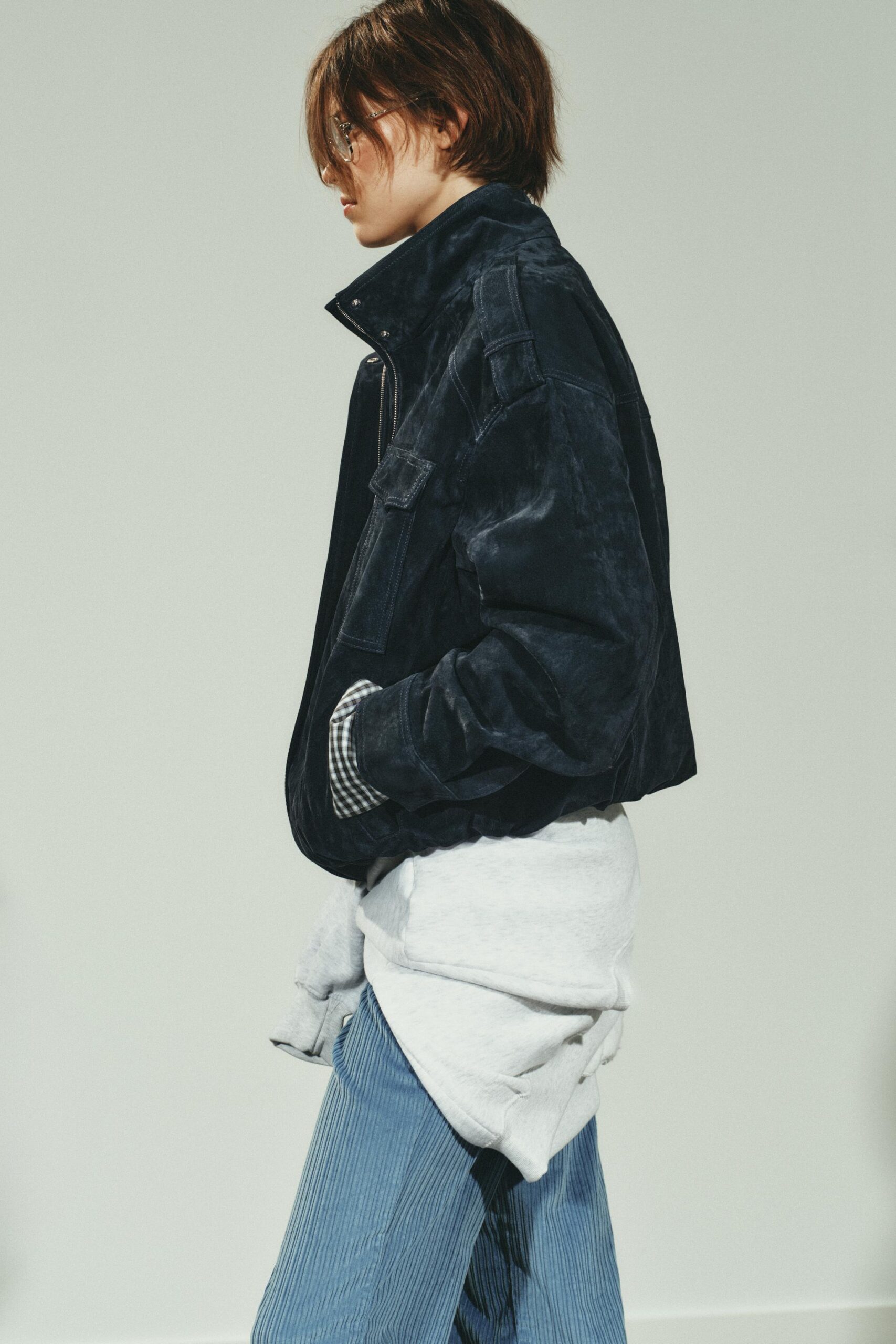 Jacket with a main fabric made of 100% suede leather. Featuring a high neck and long sleeves with buttoned cuffs. Welt pockets on the front and flap pockets on the chest. Elasticated hem. Inner lining. Front zip fastening with a snap-button placket.