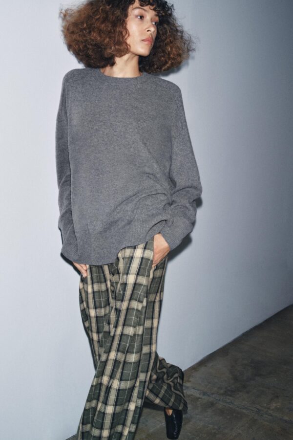 Loose-fitting 100% wool jumper. Featuring a round neck and long sleeves. Ribbed trims.