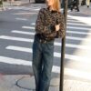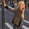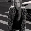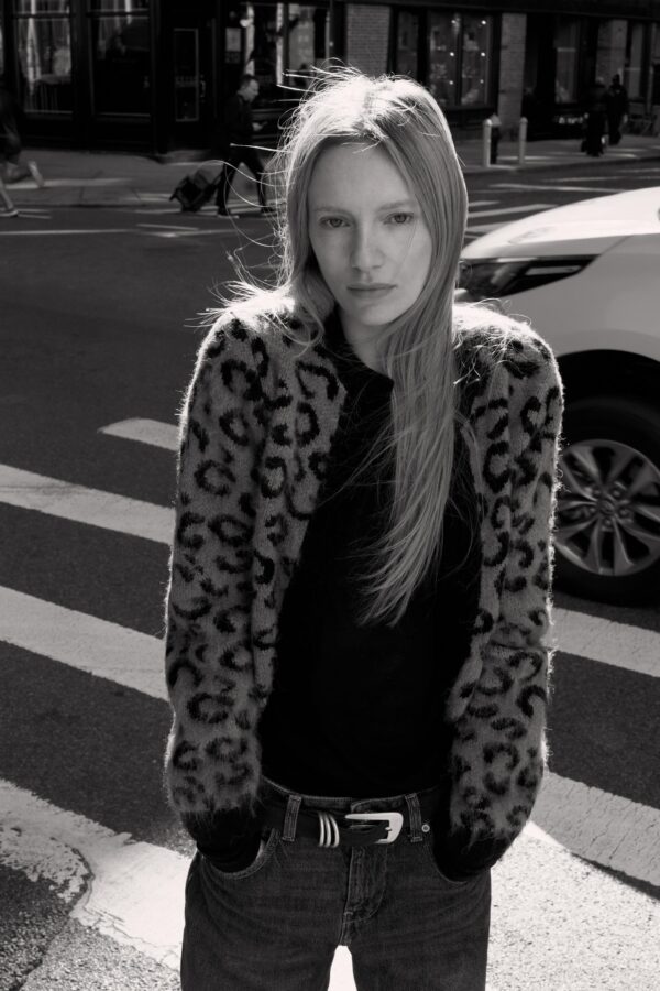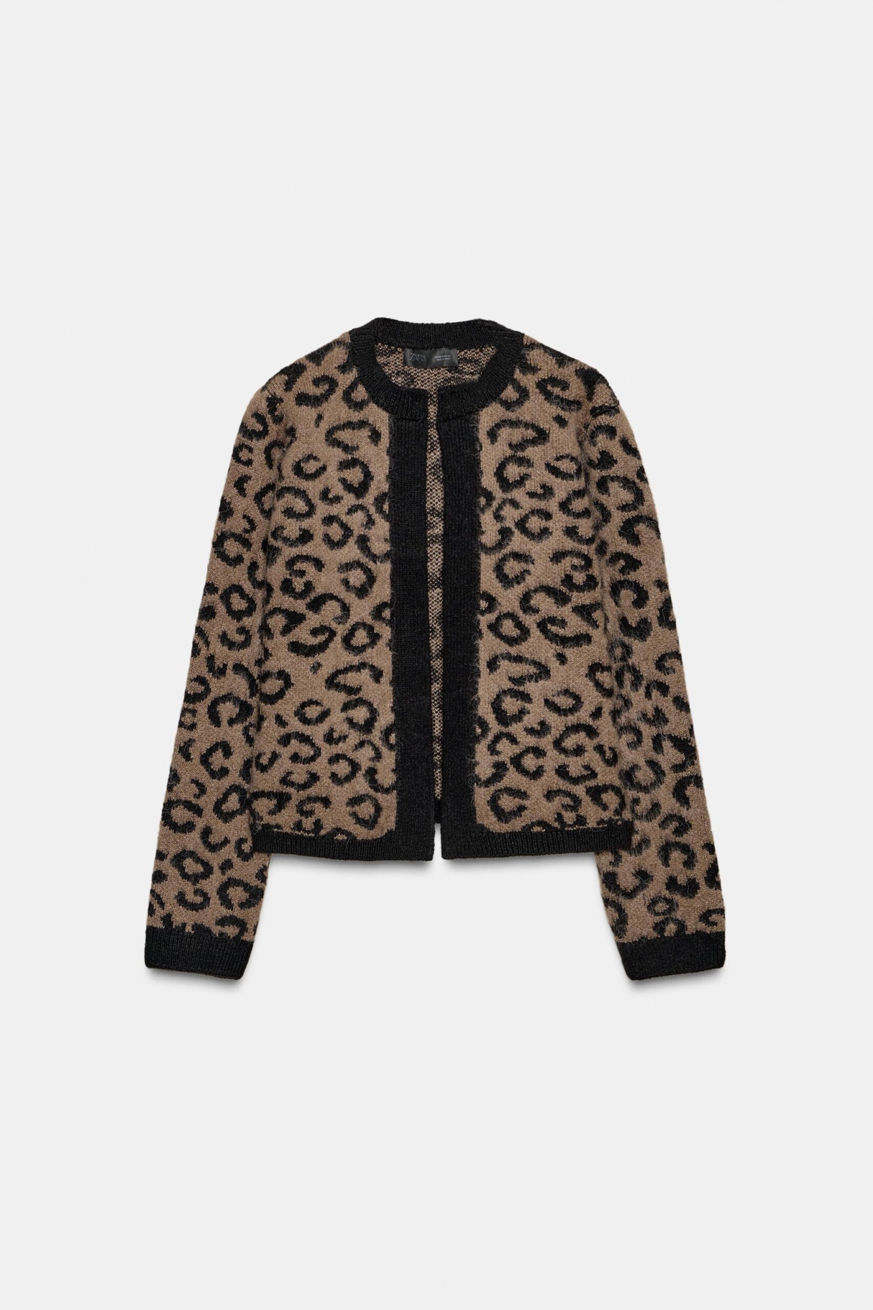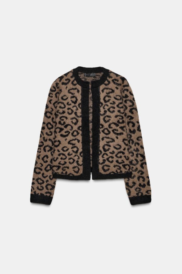 Open-front cardigan with a round neck and long sleeves. Featuring a brushed-effect animal jacquard fabric.