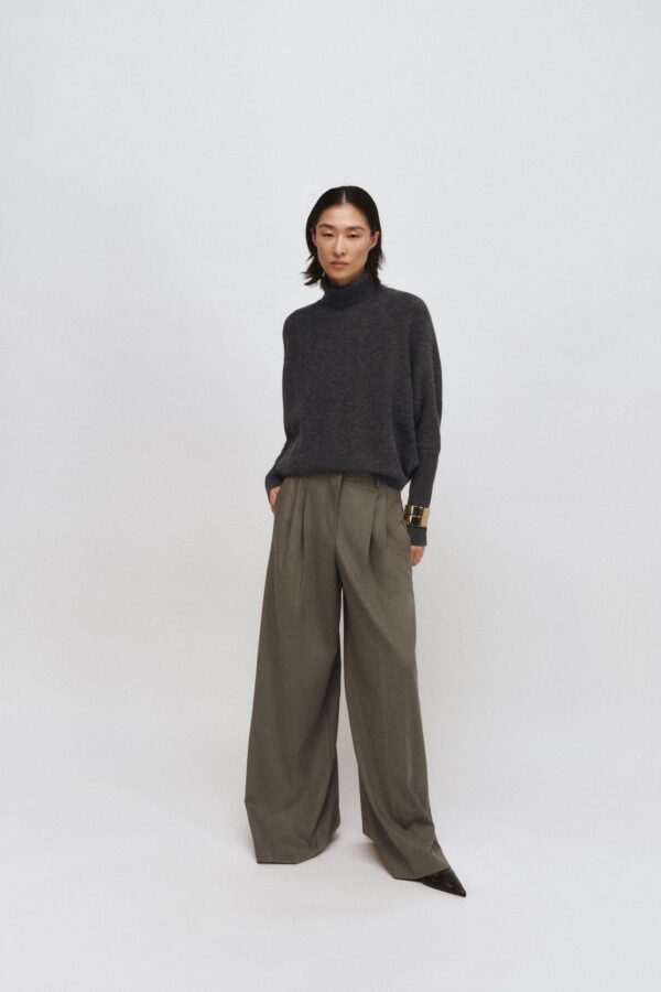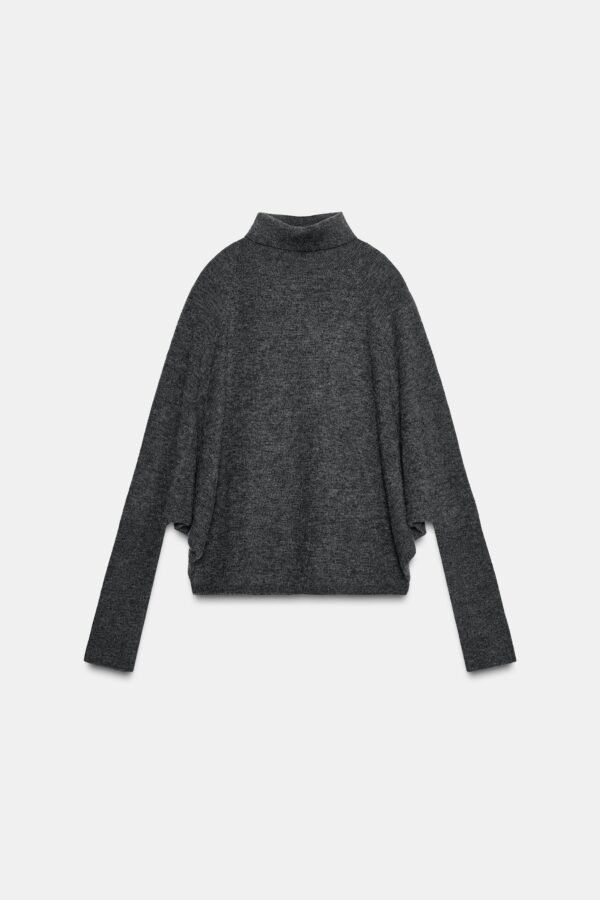 Plain knit jumper with a high neck. Long sleeves with very wide armholes, narrowing towards the wrist.
