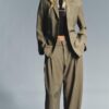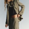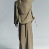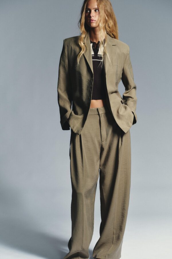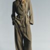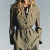 Blazer made in a flowy fabric. Featuring a lapel collar, long sleeves with shoulder pads, a thin matching fabric belt with tie and button fastening at the front.