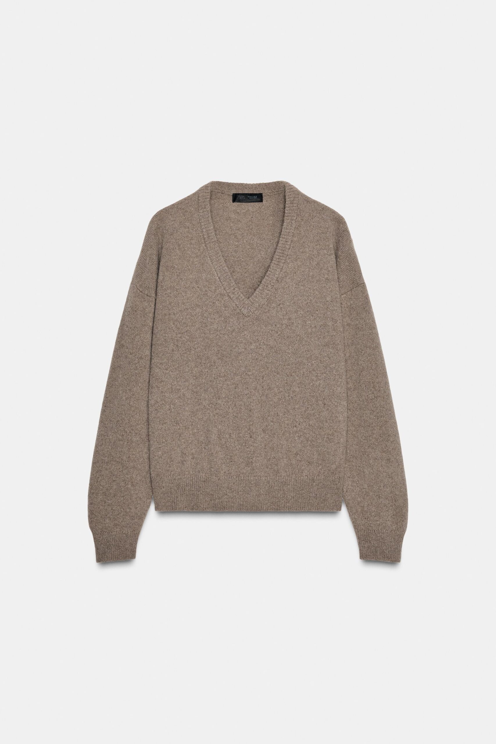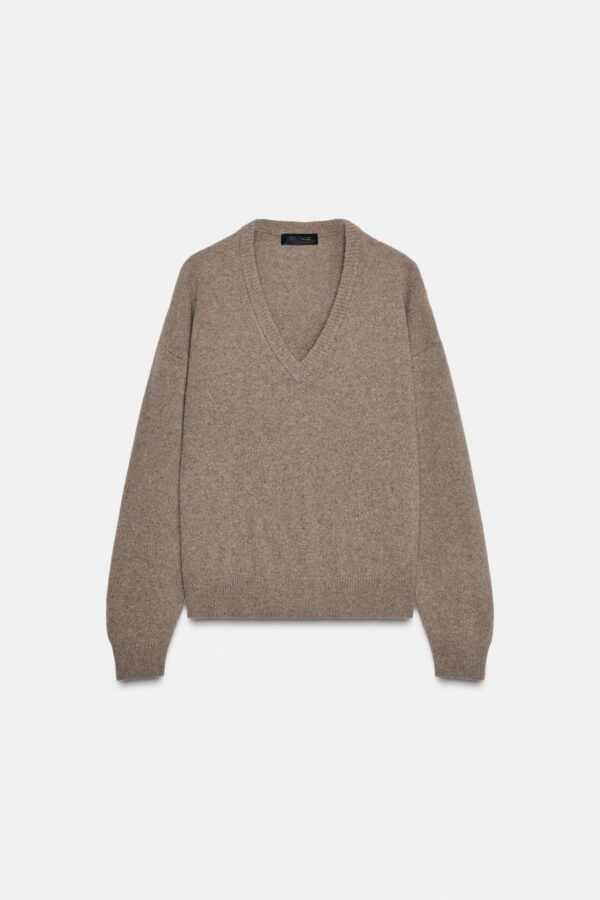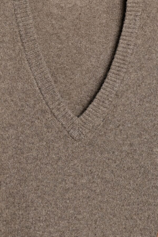 Plain knit jumper made from cashmere and wool. Featuring a v-neckline and long sleeves.