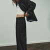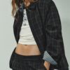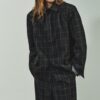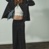 Blazer with a lapel collar, long sleeves and shoulder pads. Featuring front flap pockets. Inside lining. Front fastening with hidden buttons by a placket.