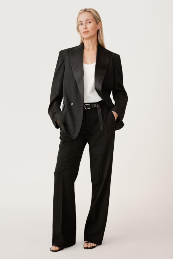 Blazer made of a spun wool blend. Notched lapel collar in matching fabric. Front flap pockets and a chest welt pocket. Back vent at the hem.