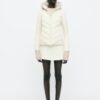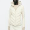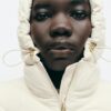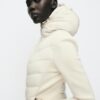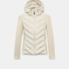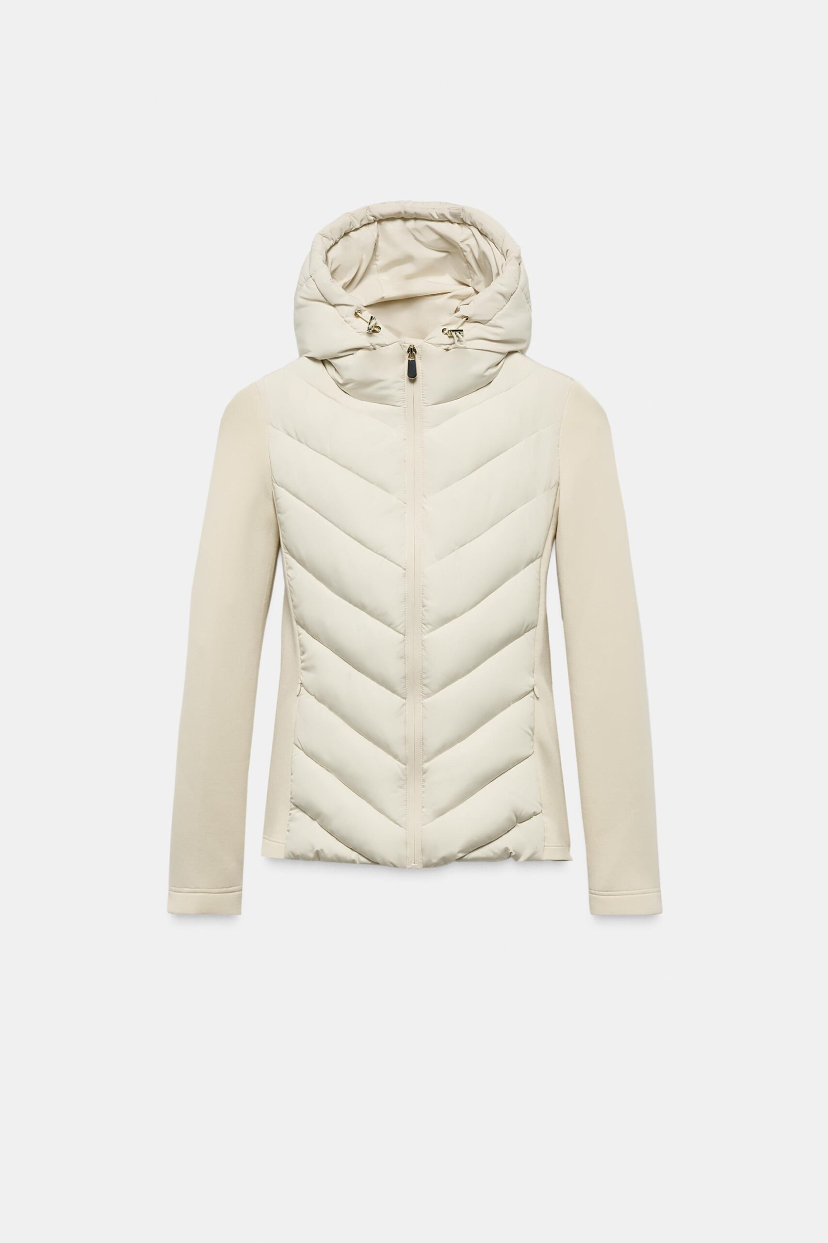 High-neck jacket with adjustable drawstring hood and long sleeves. Featuring contrast quilted panels, front pockets with fleece lining and concealed zip fastening. Zip-up front.