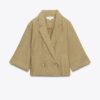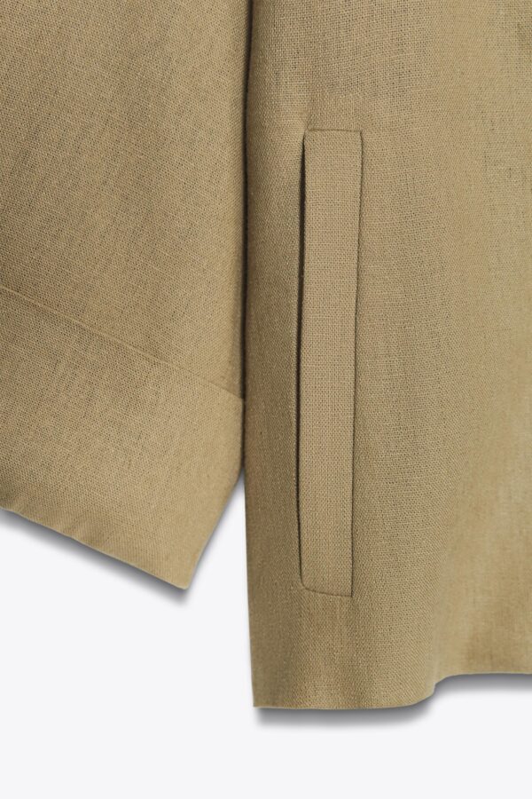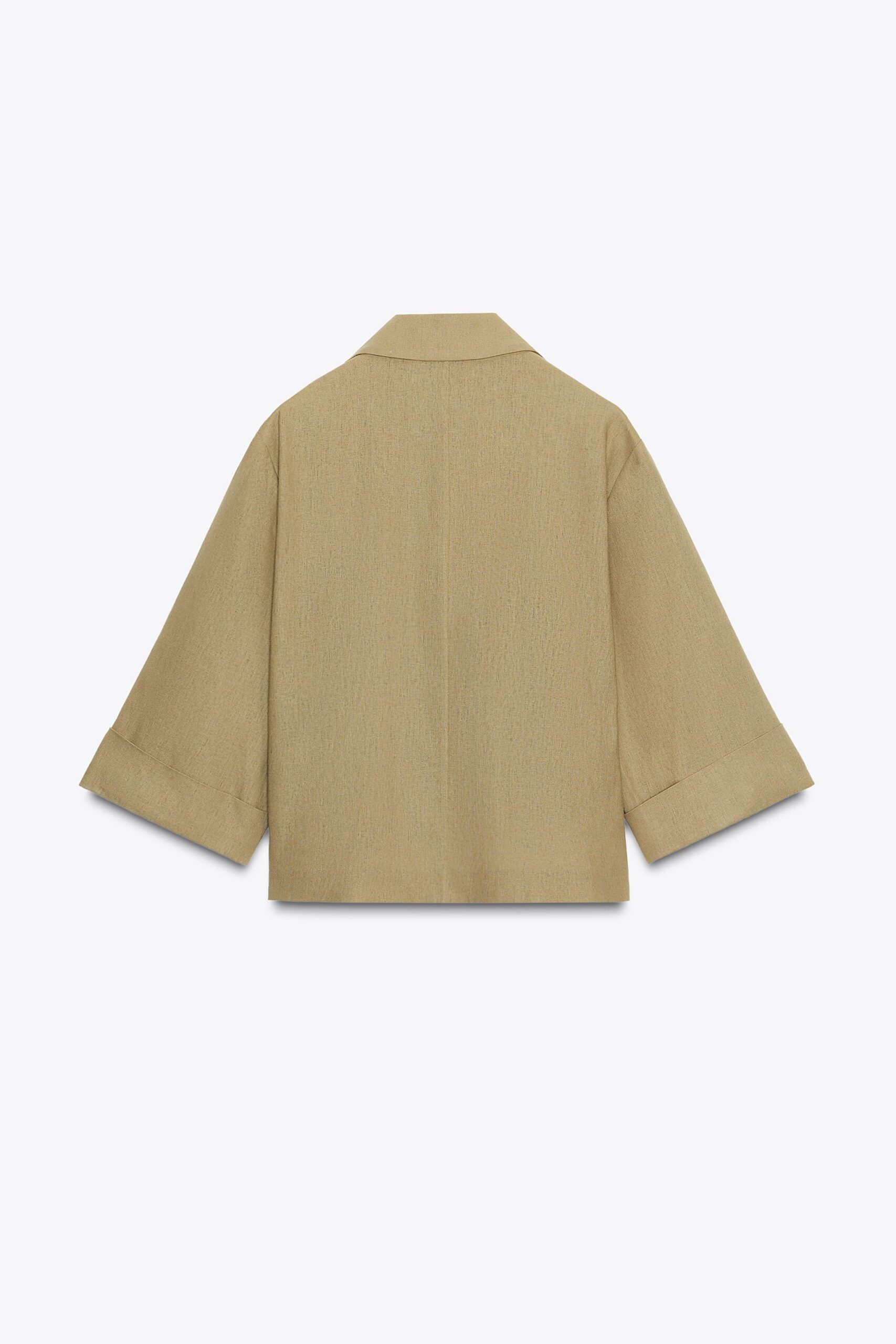 Blazer in a linen blend. Featuring a lapel collar and sleeves that finish turned-up below the elbow. Mock welt pockets at the front and a double-breasted button fastening.