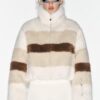 High collar with inner fleece lining. Long sleeves with a ski pass pocket, elasticated cuffs with thumbholes. Front pockets with inner fleece lining and zip fastening. Inner mobile phone pocket with glasses cleaner. Elasticated hem with adjustable drawstrings. Fixed inner powder skirt and adjustable hem to prevent cold air from entering. Front zip fastening.