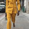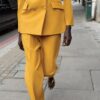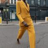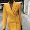 Blazer with a lapel collar, long sleeves and shoulder pads. Featuring front flap pockets and a double-breasted button fastening.
