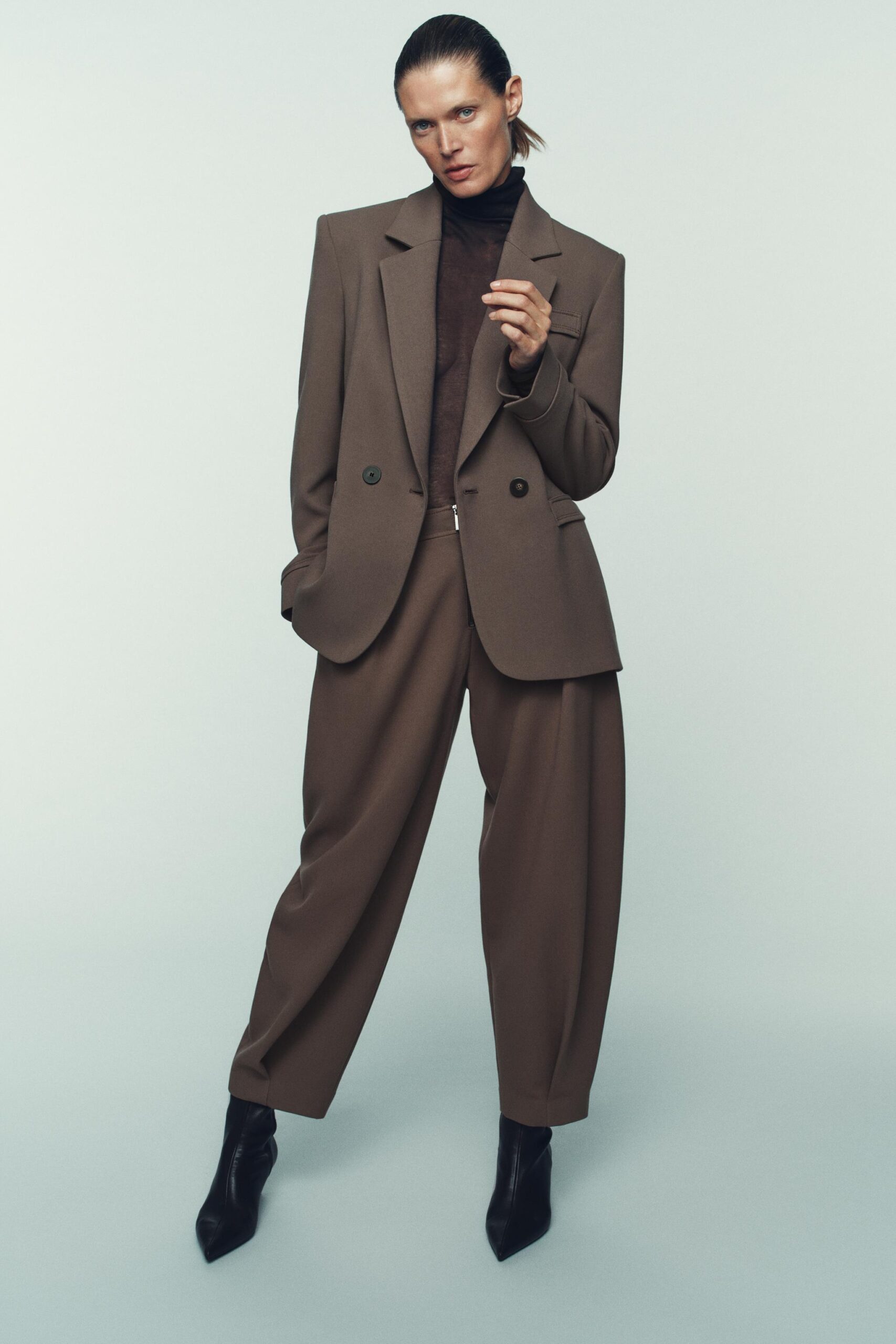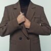 Blazer with a lapel collar and long sleeves with shoulder pads. Featuring front flap pockets, a back vent and double-breasted button fastening at the front.
