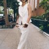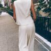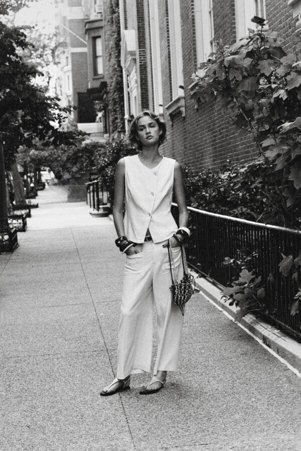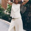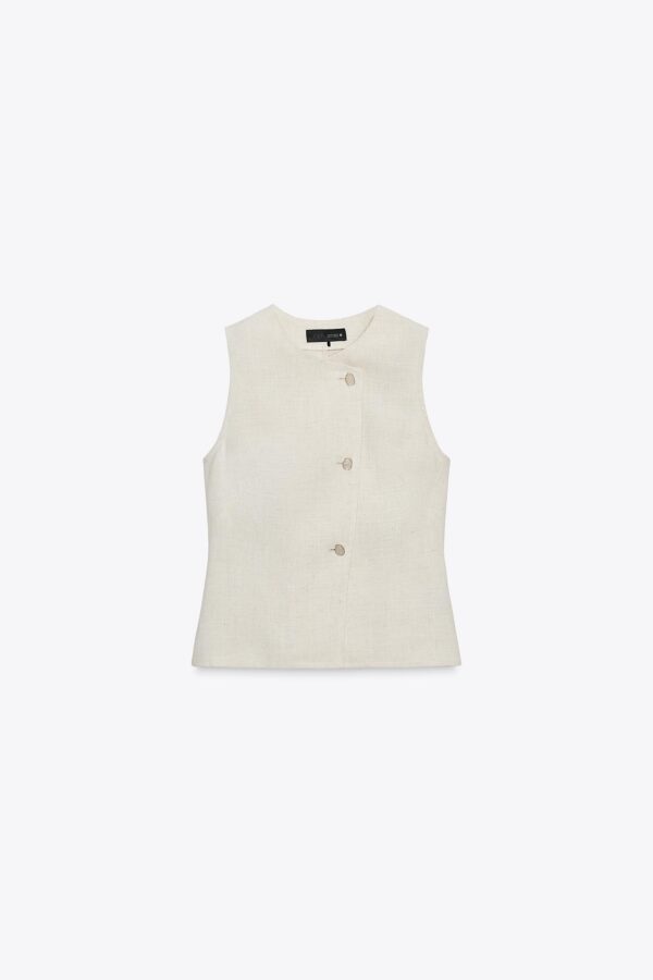 Waistcoat made from a linen blend. Featuring a round neck and sleeveless design. Double-breasted front button fastening.