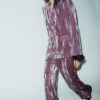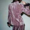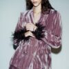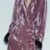 Blazer with a lapel collar and long sleeves with shoulder pads, finished with feathers. Featuring front flap pockets and double-breasted jewel button fastening.
