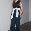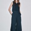 Waistcoat made from spun cotton. V-neck and sleeveless. Featuring front faux flap pockets. Matching inner lining. Double-breasted front fastening with hidden buttons.