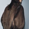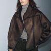 Jacket with a high collar and long sleeves. Featuring hidden front pockets in the seam. Tonal faux shearling interior. Front zip fastening.