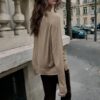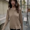 Double effect jumper made from knit fabric. Round neckline and long sleeve.