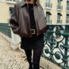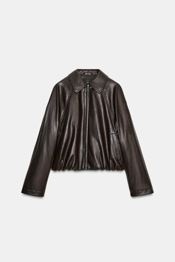 Bomber jacket with a quilted lining. Lapel collar and long drop-shoulder sleeves. Front pockets. Hem finished with inner elastic. Zip-up fastening at the front.