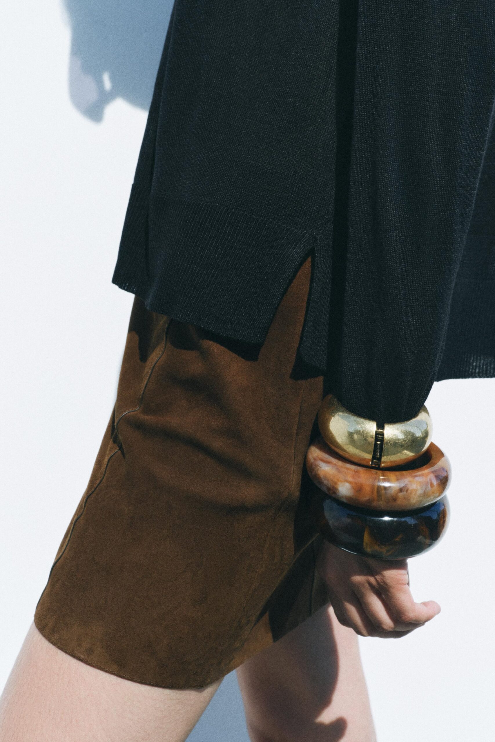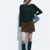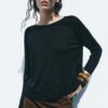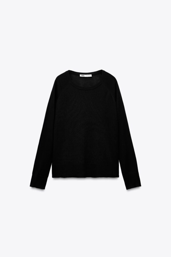 Plain round neck sweater with long sleeves, side vents at the hem and ribbed trims.