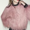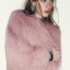 Round neck, long sleeve jacket. Featuring elasticated trims and a front snap-button fastening.