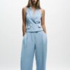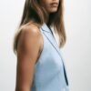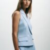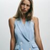 Halter neck waistcoat with lapels and open back. Double-breasted button fastening. Front flaps.