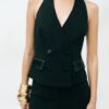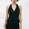 Halter neck waistcoat with a V-neckline and open back. Featuring satin front flap pockets and satin-covered buttons.