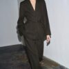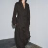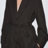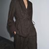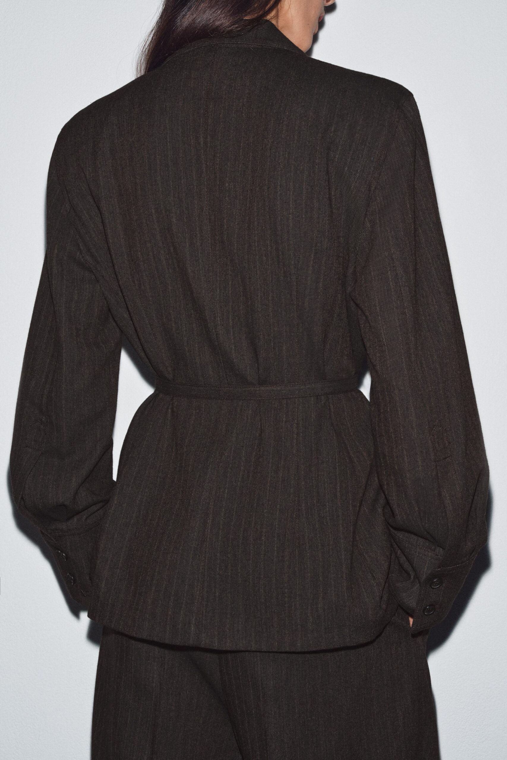 Blazer with a lapel collar and long sleeves with buttoned cuffs. Front pockets. Matching adjustable tie belt. Herringbone detail. Front button fastening.