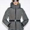 Elastic belt. Front pockets with inner fleece lining and zip fastening. Inner strap detail to hang the jacket from the shoulders. Inner mobile phone pocket with glasses cleaner and inner mesh pocket for gloves.