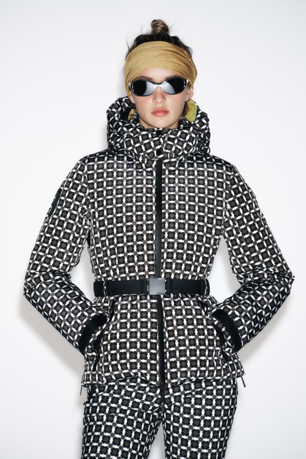 High neck with an inner elastic strap to hold a scarf. Detachable and adjustable hoodie with elastic drawstrings. Long sleeves with a ski pass pocket, finished with an adhesive strap and cuffs with a thumbhole. Adjustable ventilation in the armpits with a concealed zip.