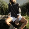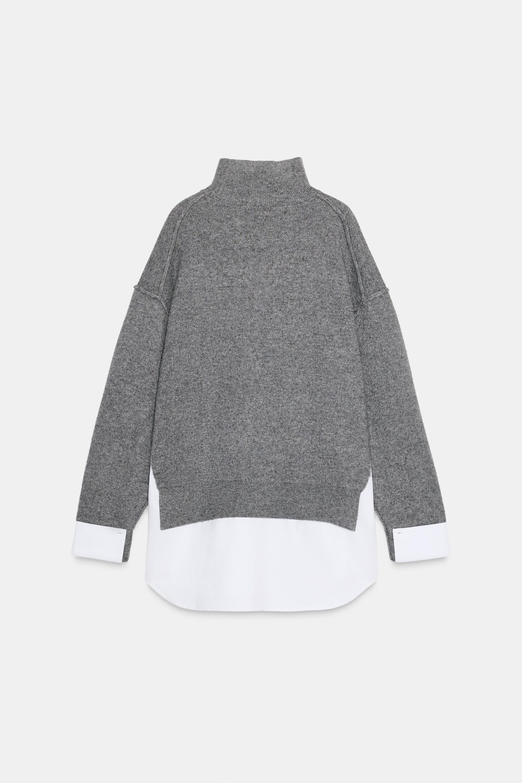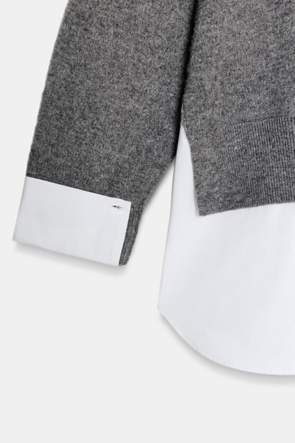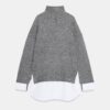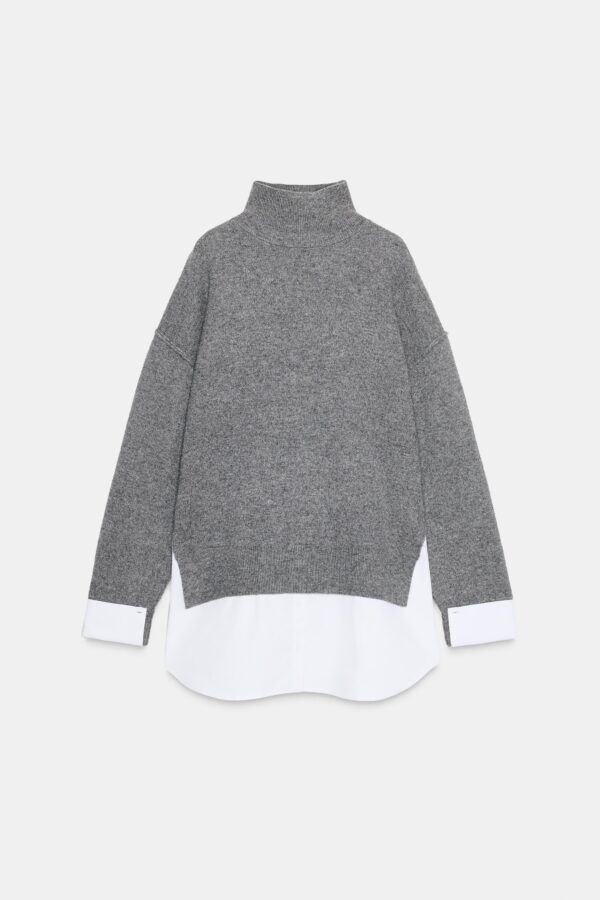 High neck jumper with long sleeves. Featuring a contrast poplin fabric detail.