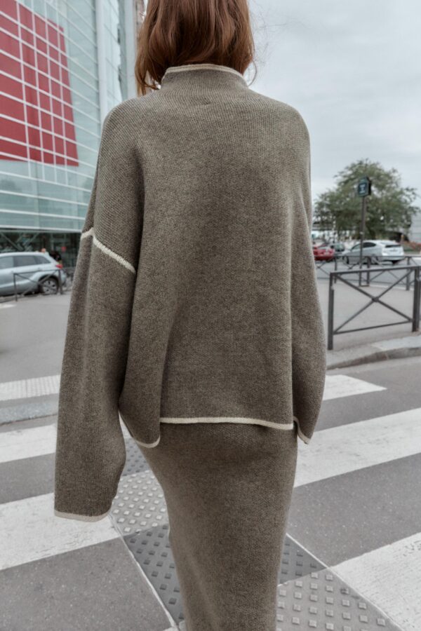 High neck jumper with long sleeve. Featuring contrast combined trims.