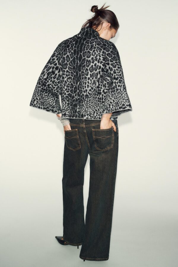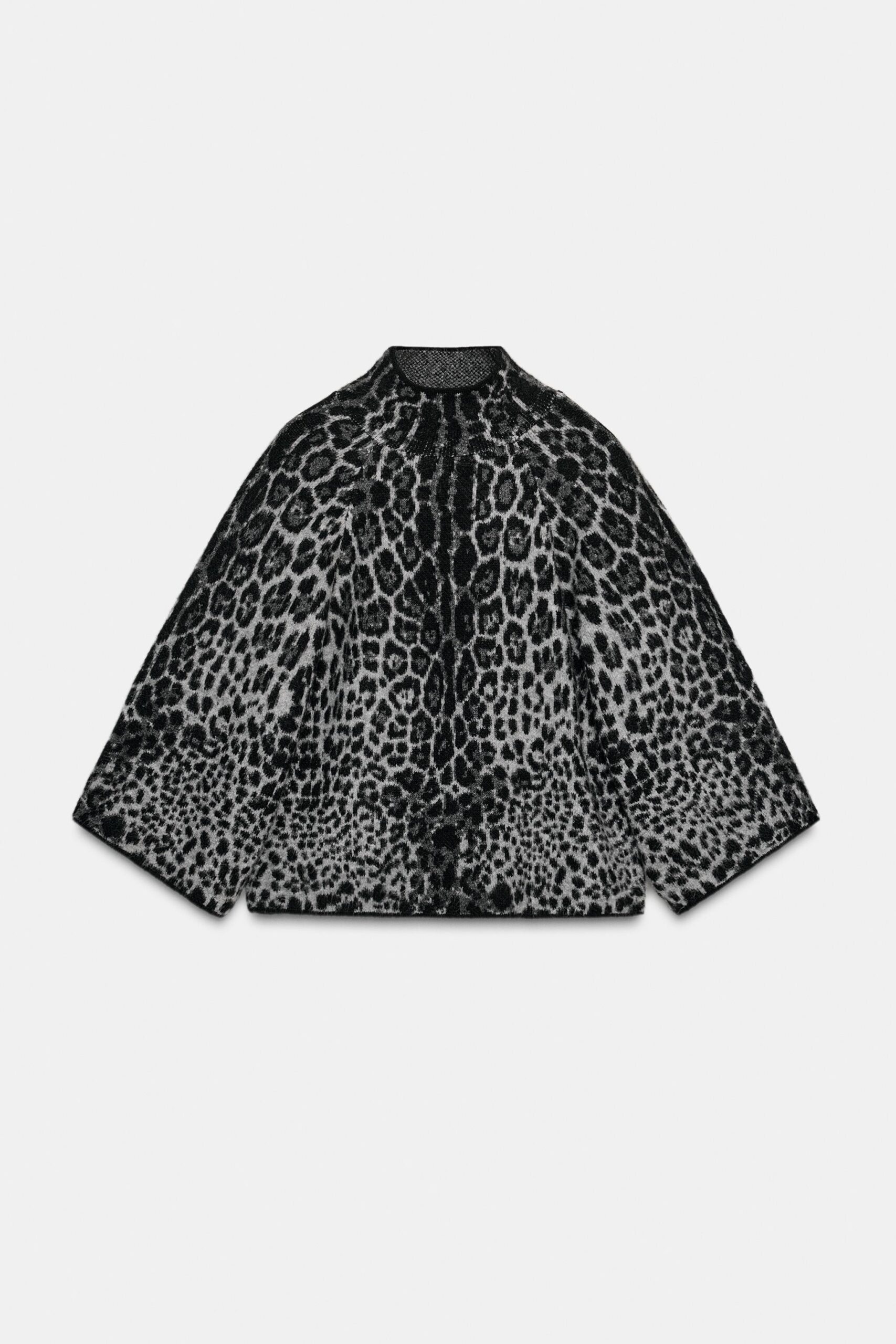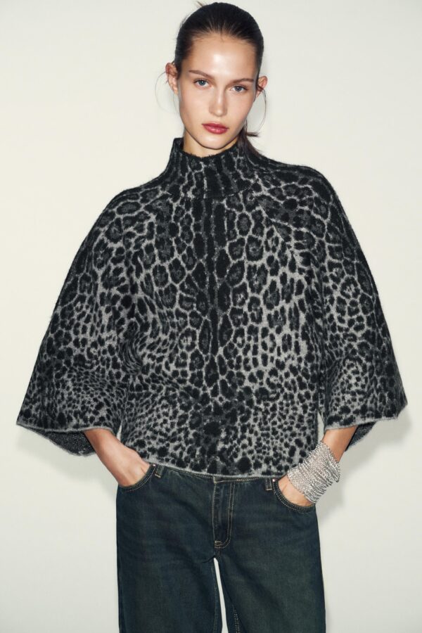 Jumper with a high neck and wide sleeves. Featuring animal jacquard detail.