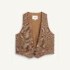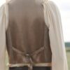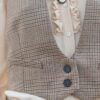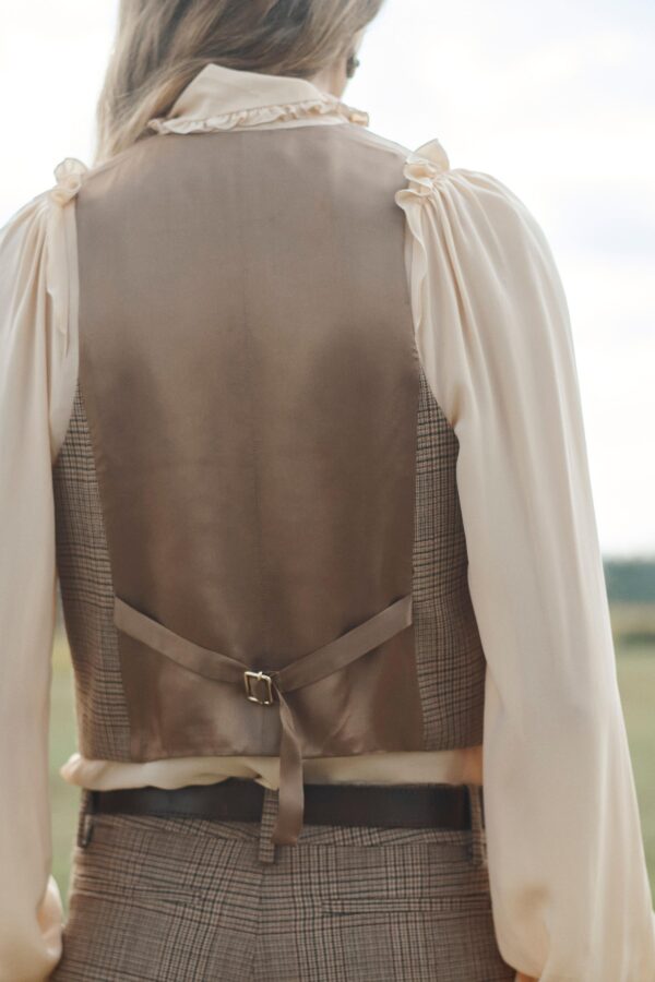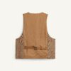 Waistcoat made from 100% wool yarn. Features a V-neckline and sleeveless design. False welt pockets on the front. Fabric combination detail. Adjustable back tab with buckle. Front button fastening.