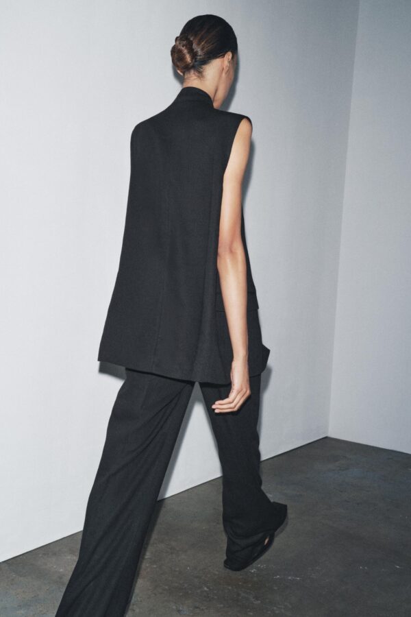 Waistcoat made of a viscose blend knit. Featuring a V-neck and sleeveless design. Front flap pockets. Front button fastening.