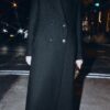 Coat made from wool. Featuring a lapel collar and long sleeves with shoulder pads. Front welt pockets. Back vent at the hem. Double-breasted front button fastening.