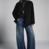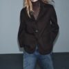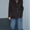 Blazer made from wool yarn. Notched lapel collar and long sleeves. Patch pockets on the front. Front button fastening.