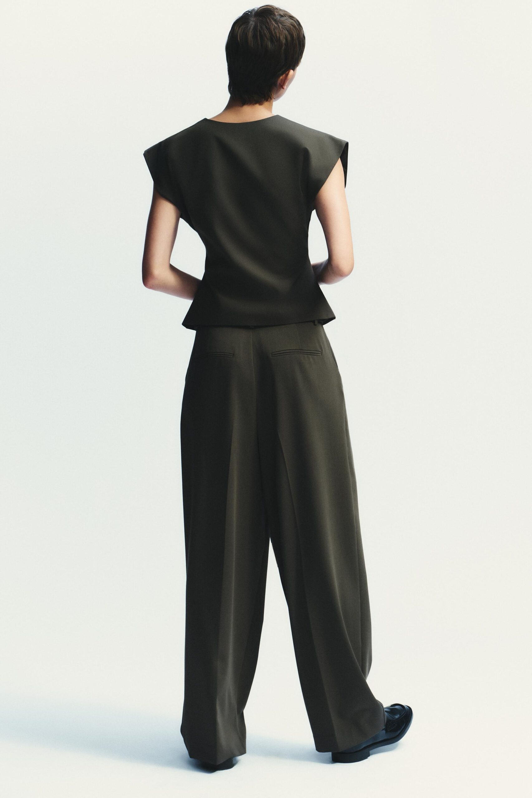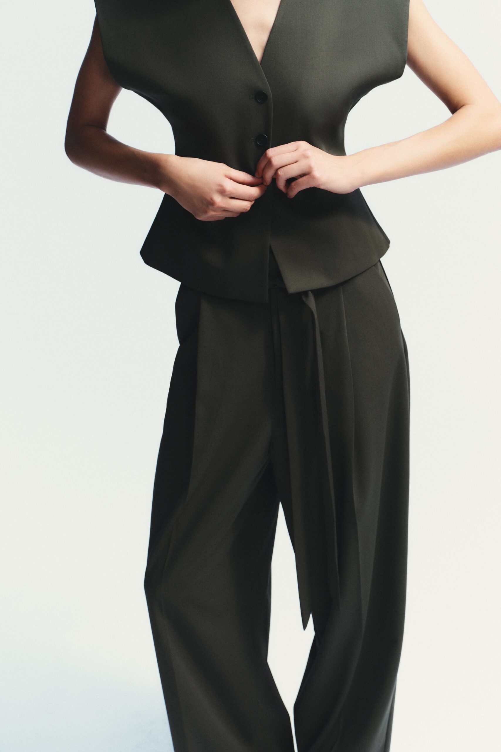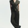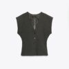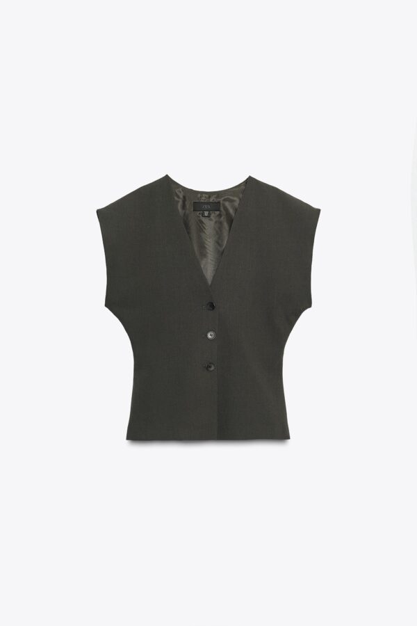 V-neck waistcoat with wide short sleeves. Inner lining. Fitted waist. Front button fastening.