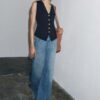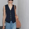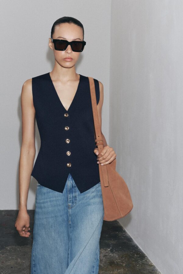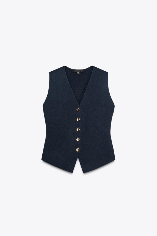 V-neck waistcoat with sleeveless design. Front button fastening.