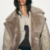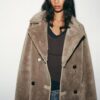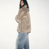 Reversible coat with a notched lapel collar and long sleeves. Featuring combined leather effect and faux fur fabric detail. Front patch pockets. Front button fastening.