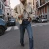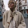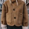 Reversible jacket with a high collar and long sleeves. Front pockets. Combination fabric detail with a faux suede and faux shearling effect. Button-up front.