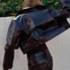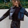 Jacket featuring a lapel collar and long sleeves with tab and button details. Front flap pockets. Front button fastening.