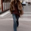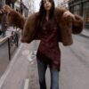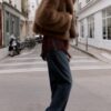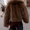 Short coat with a lapel collar and long sleeves. Featuring front pockets and hook-and-eye fastening.