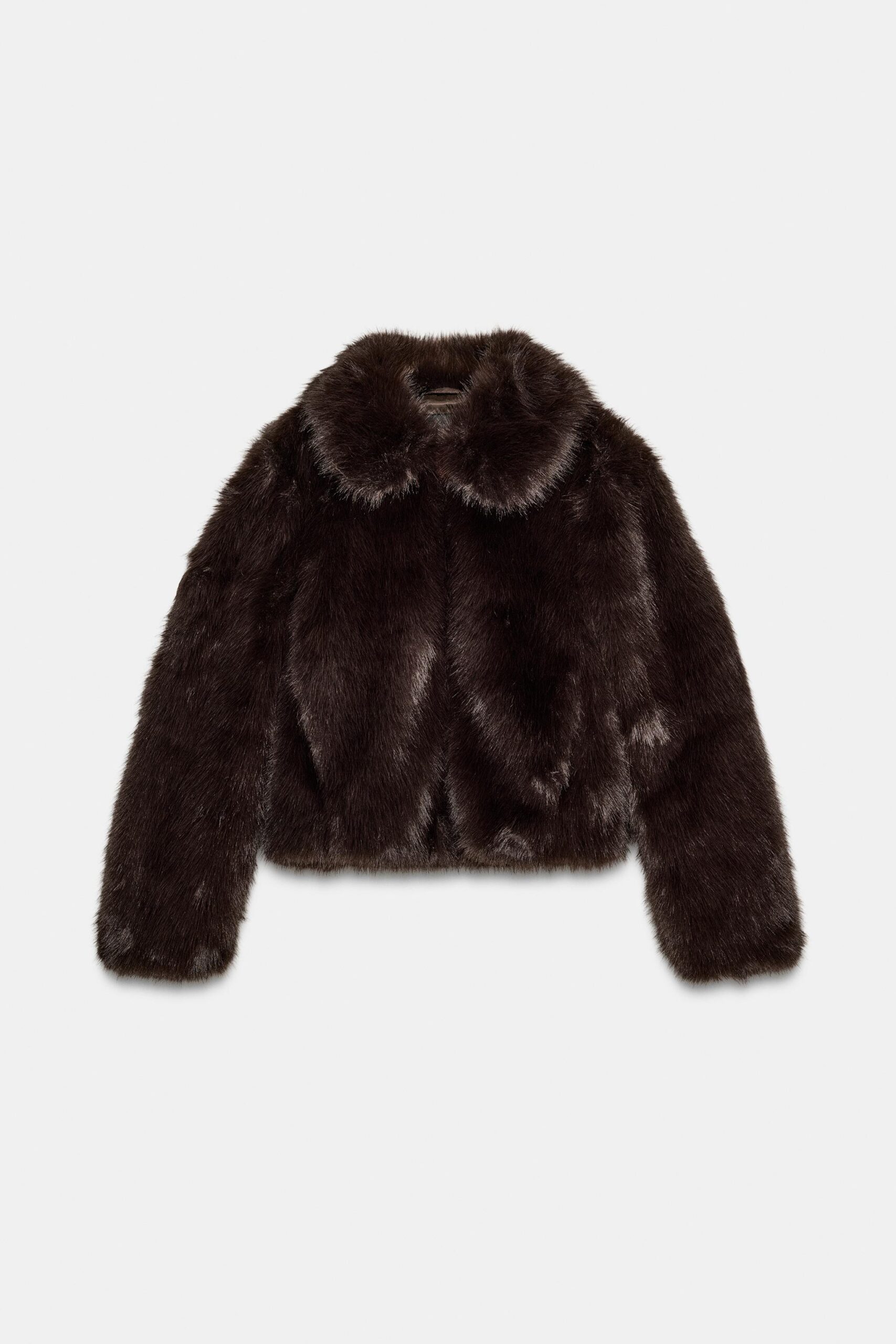 Short coat with a lapel collar and long sleeves. Featuring side pockets, a tonal lining and a metal zip-up front.