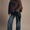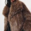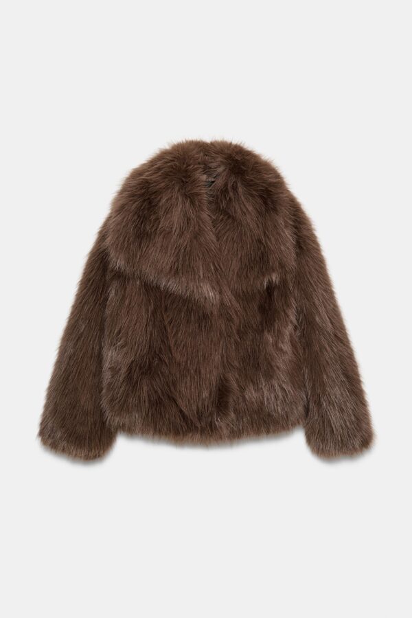 Short coat featuring a lapel collar and long sleeves. Side pockets. Tonal lining. Fastens at the front with metal hooks.