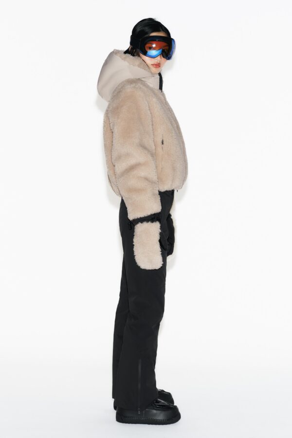 High collar with inner fleece lining and adjustable hoodie with elastic drawstrings. Long sleeves with a ski pass pocket, finished with cuffs with thumbholes. Front pockets with inner fleece lining and zip fastening. Inside mobile phone pocket with glasses cleaner. Elasticated hem. Detachable inner snow skirt with zip and adjustable hem to prevent cold air from entering. Front fastening with a double-slider zip.
