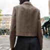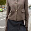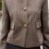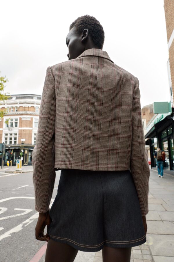 Blazer with a lapel collar and long sleeves with shoulder pads. Front patch pockets with flaps. Front button fastening.