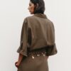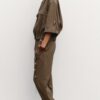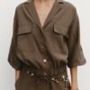 Collared short sleeve shirt with tab and button detail on the turn-up cuffs. Front patch pockets with flaps. Elasticated hem. Front popper button fastening.