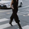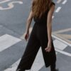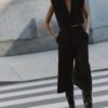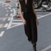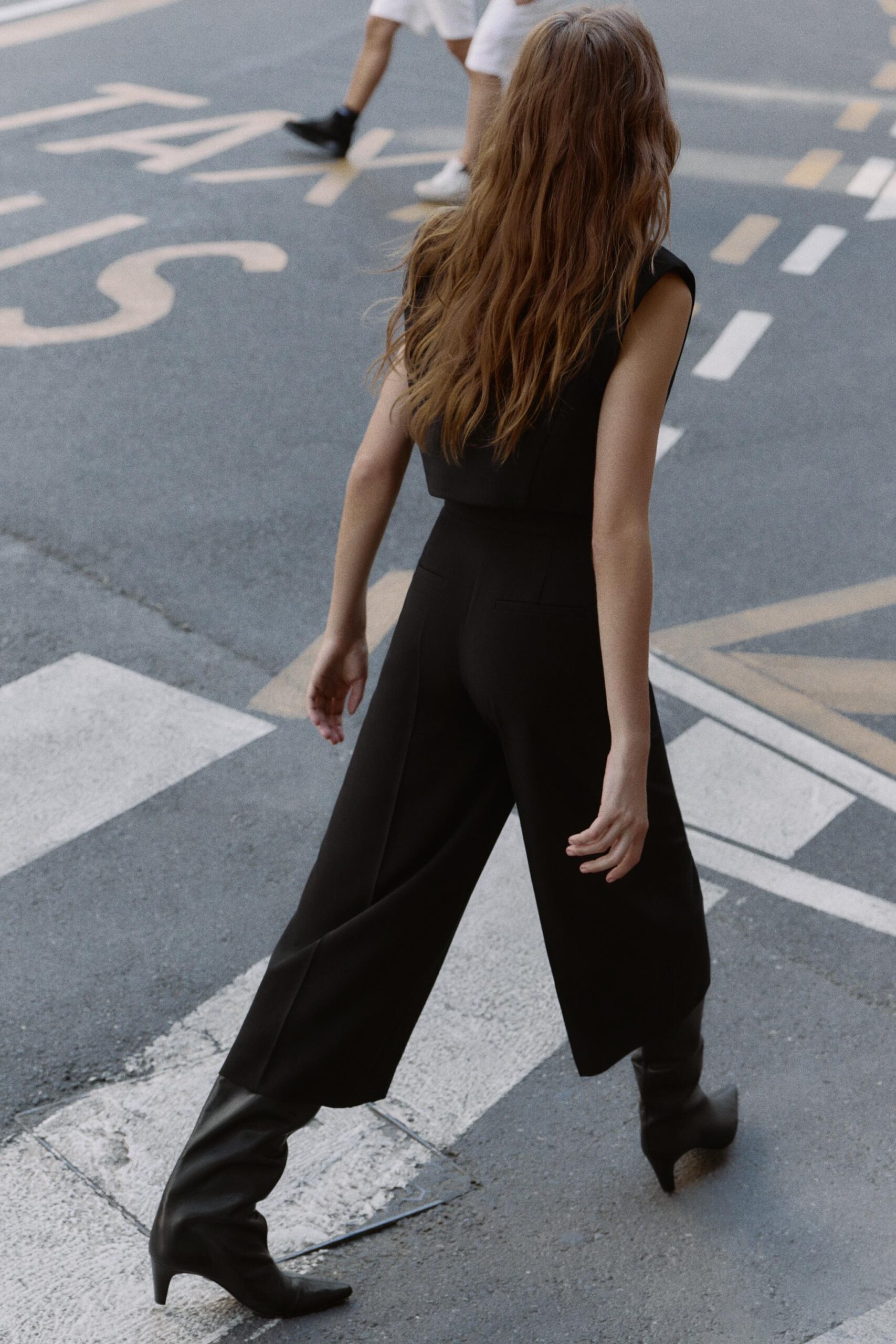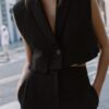 Sleeveless waistcoat with a lapel collar and shoulder pads. Features front flaps and a single-button fastening at the front.