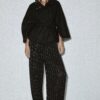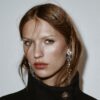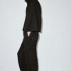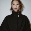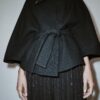 Short coat made of wool. Features a high neck and cape sleeves. Includes a belt detail in the same fabric. Fastens at the front with buttons.