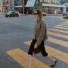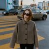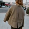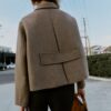 Wool coat with a lapel collar and long sleeves. Featuring front welt pockets and button fastening at the front.